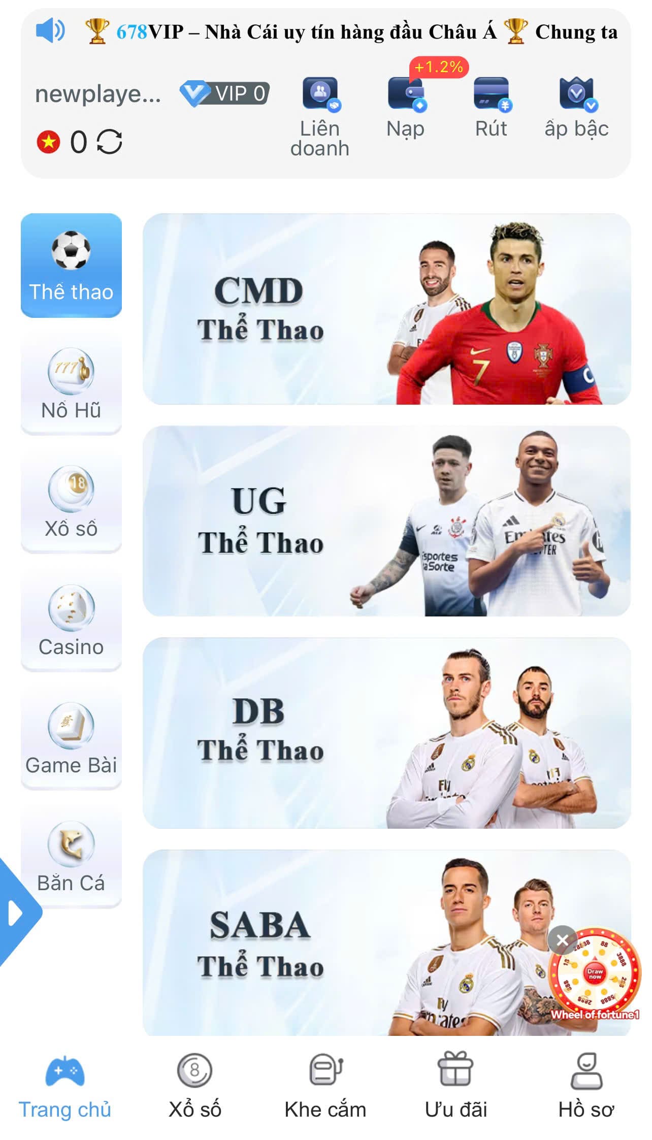 Sảnh đặt cược Thể thao tại 678vip88.com với nhiều trận đấu đỉnh cao, giải đấu hấp dẫn, kèo cược xanh chín, trả thưởng cực cao. Cược thủ có thể nhận được thưởng lên tới 18,888K.